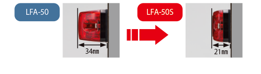 LFA-50/LFA-100をベースに薄型デザインを実現しました。車両前部など突出を抑えたい場所の取り付けに最適です。